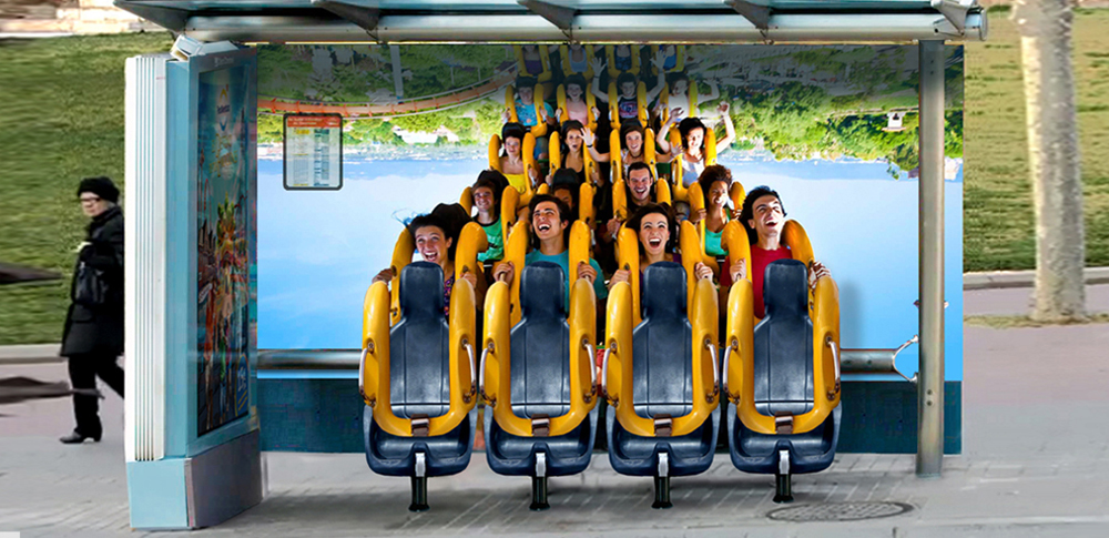 El proyecto de Pequeña pero matona “Bus stop experience” para Port Aventura, incluido en el libro “Sur le pavès la pub, la publicidad en las aceras”.