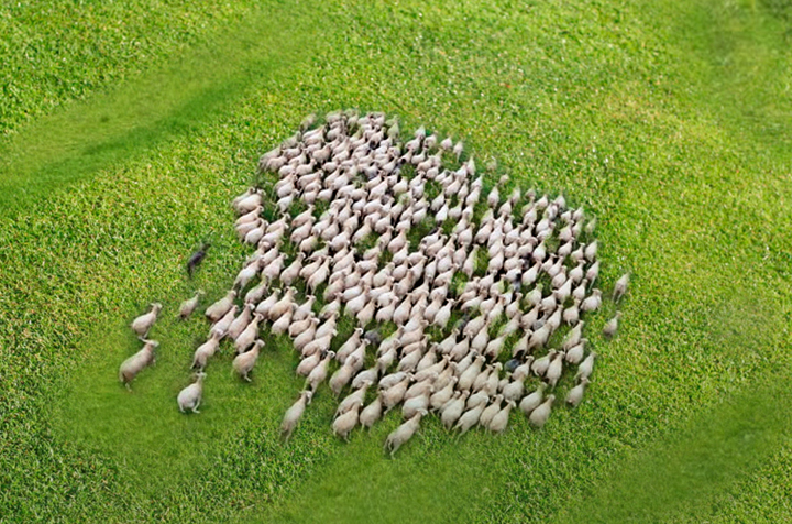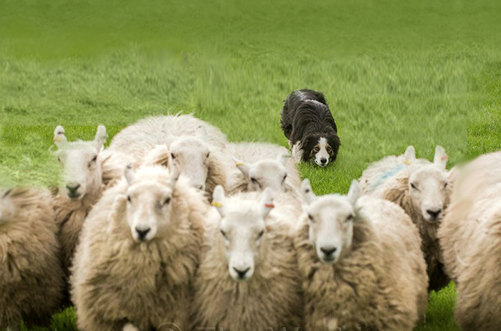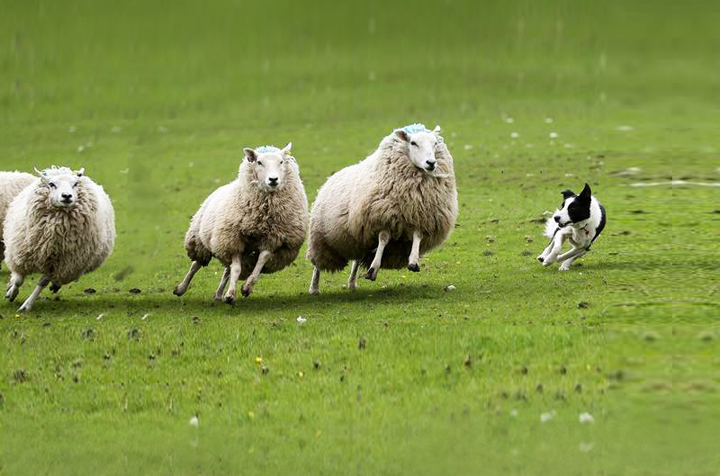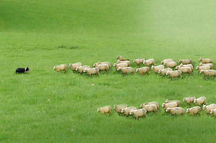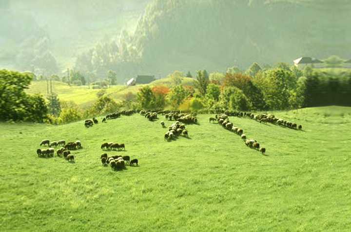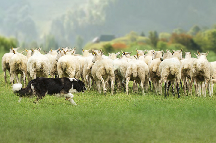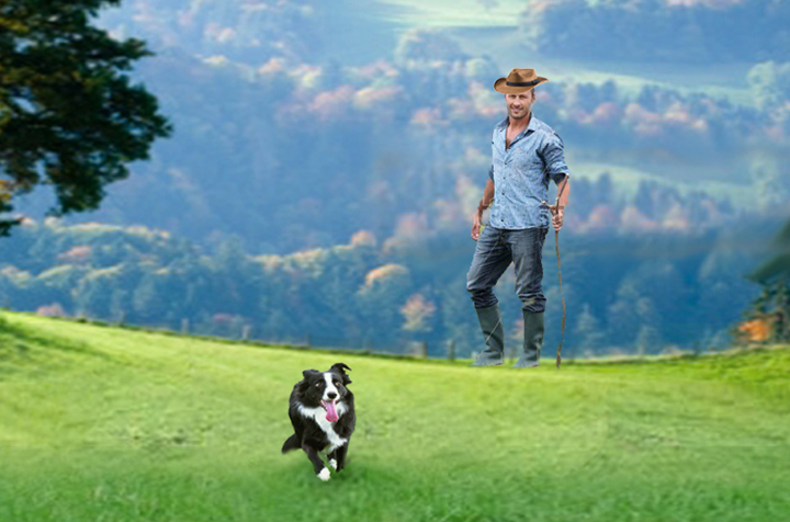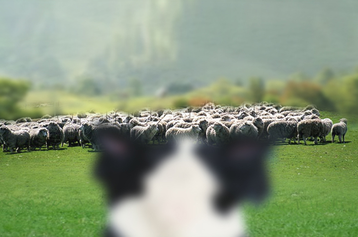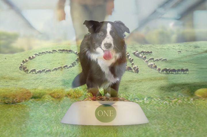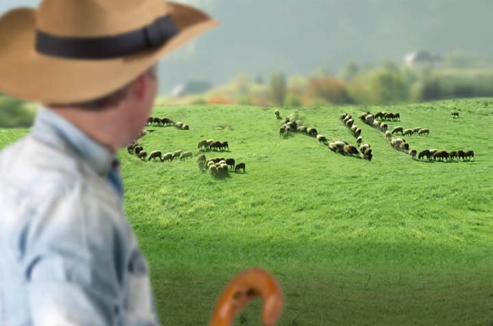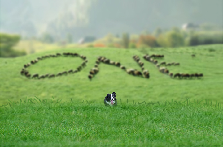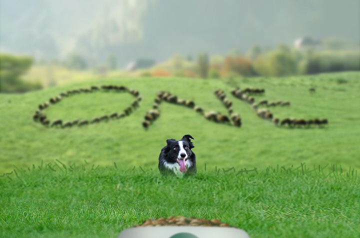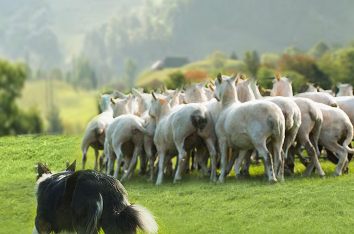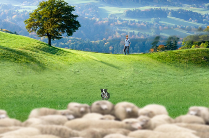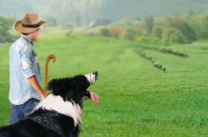 En un entorno rural de los Pirineos un pastor intenta, silbando y moviendo el bastón, guiar a su perro para que ordene al rebaño de ovejas. El perro, de aspecto rústico y desmelenado, mueve la cola indicando al pastor que tras una dura jornada de trabajo lo que quiere es “comer”. Viendo que el pastor no le hace caso, toma una decisión y empieza a ordenar el rebaño con la intención de que las ovejas formen